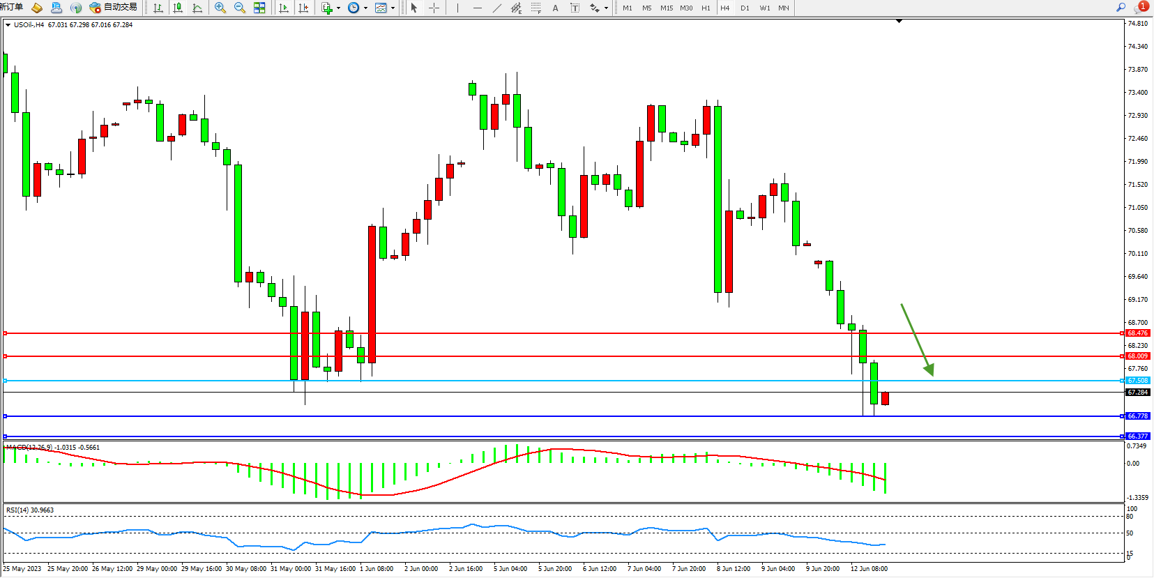 原油维持67.284附近震荡,高盛分析师将油价预测下调了近10%,原因是他们认为原油供应增加,需求放缓。