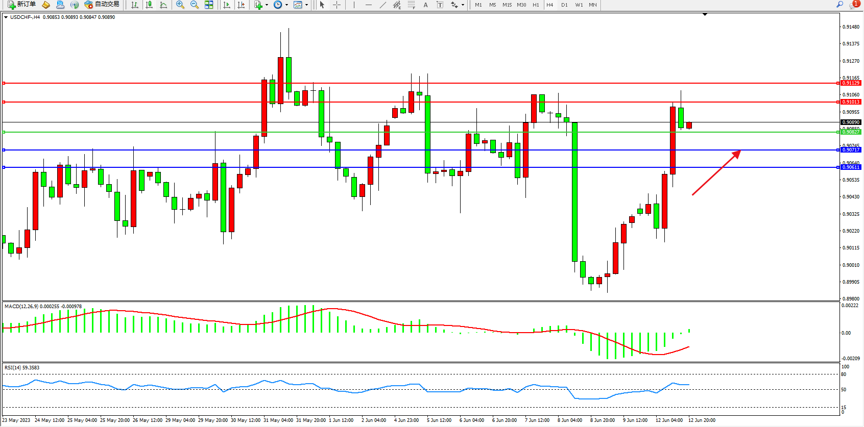 备选策略:0.90827下方看跌,目标0.90717 0.90611
