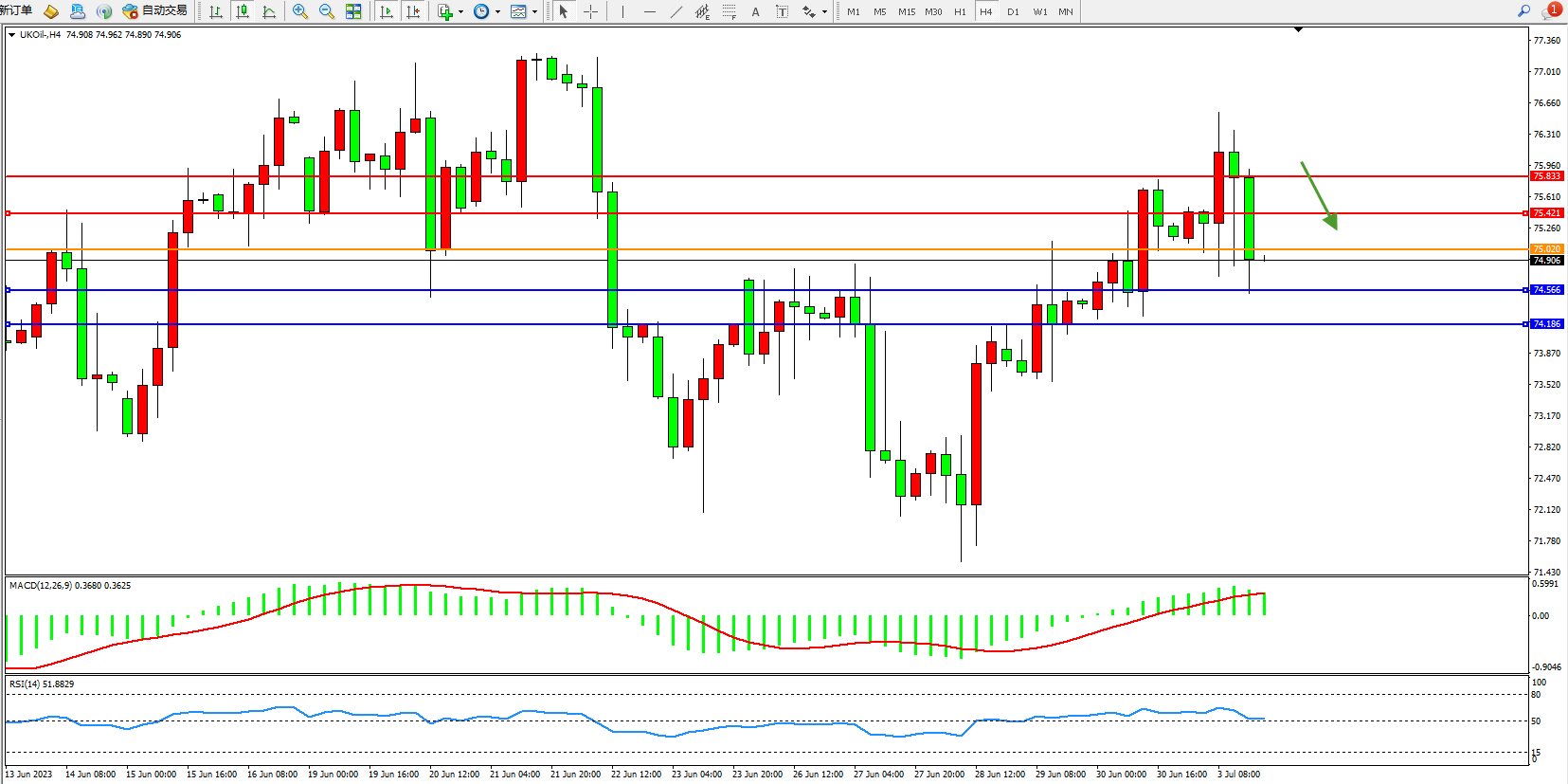布油UKOil——4小时K线图显示: