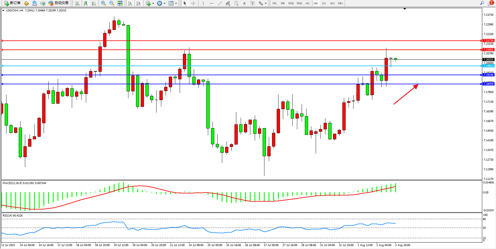 交易策略:7.19833上方看涨,目标7.21052 7.21739