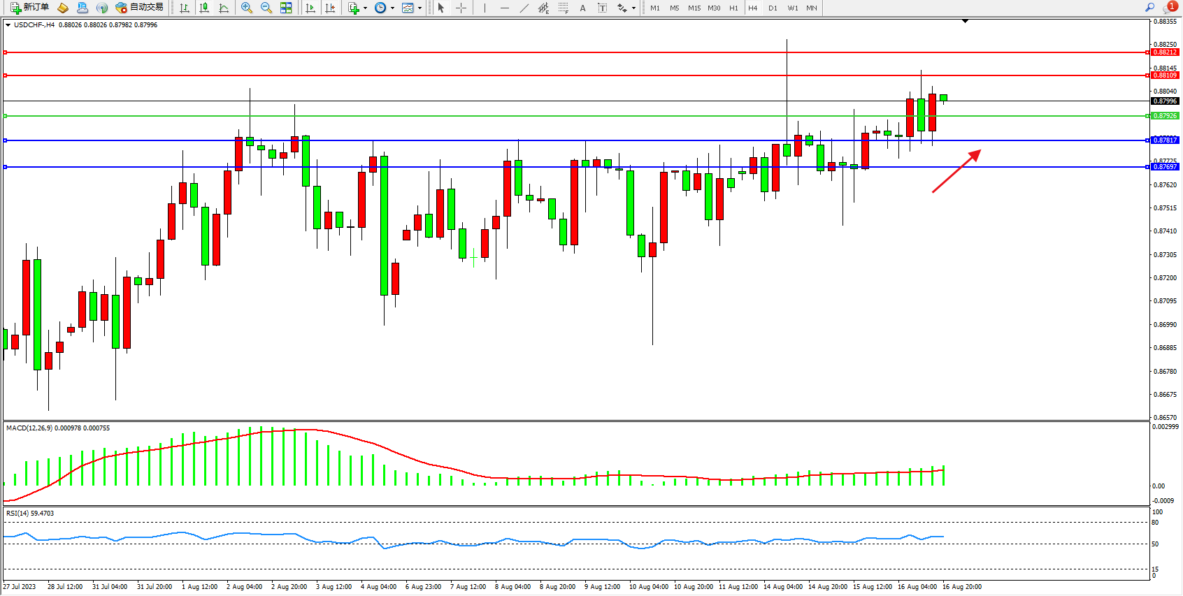 交易策略:0.87926上方看涨,目标0.88109  0.88212