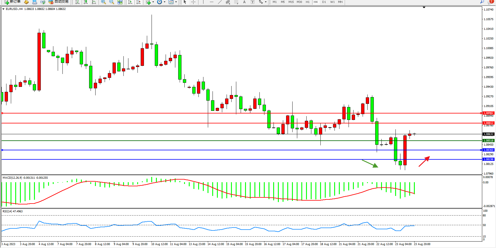 交易策略:1.08518上方看涨,目标1.08812  1.08982