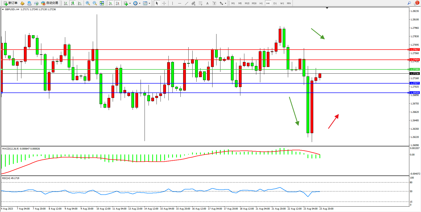 英镑美元GBPUSD ——4小时K线图显示: