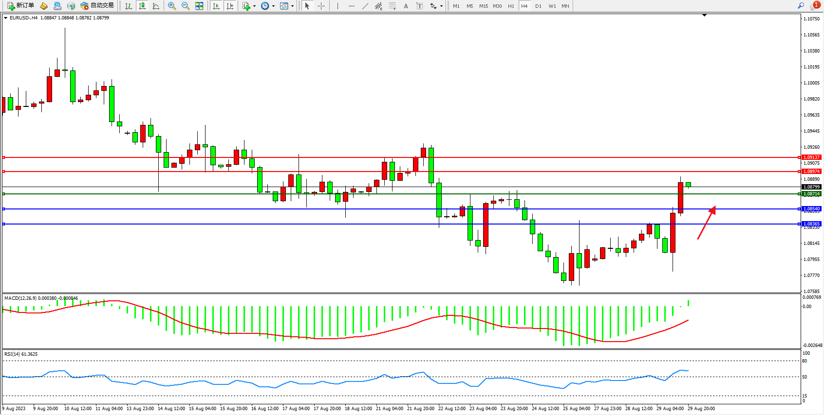 备选策略:1.08714下方看跌,目标1.08540  1.08365