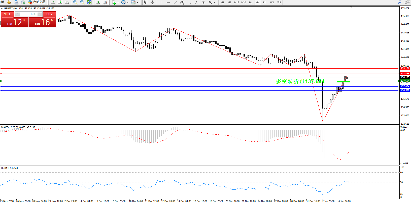交易策略:137.694上方看涨,目标138.556139.161