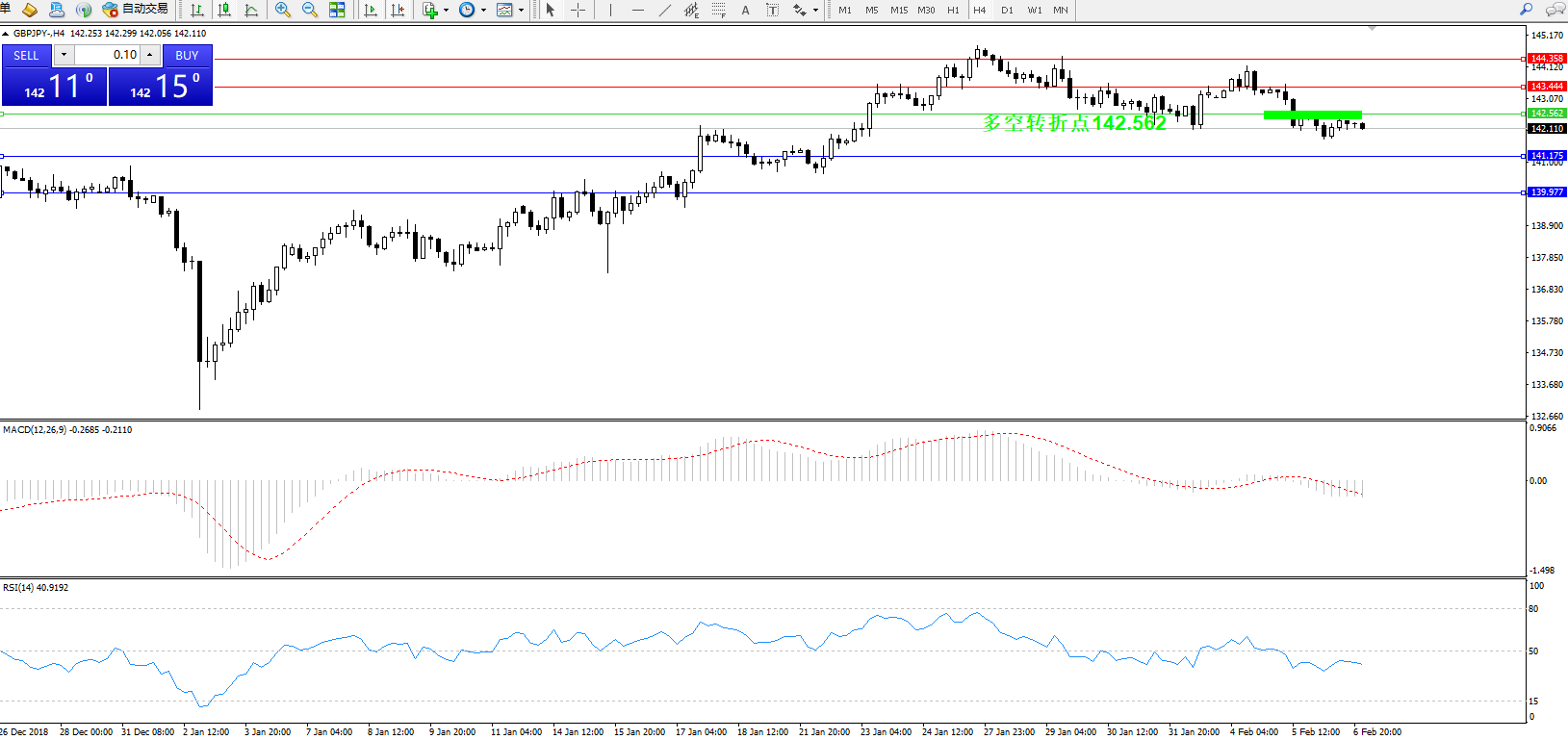交易策略:142.562下方看跌,目标141.175、139.977