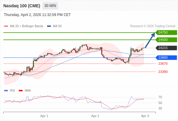 在 23880 之上,看涨,目标价位为 24500 ,然后为 24750 。