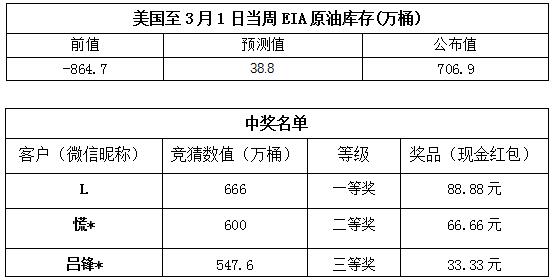 2019年3月第1期“EIA大竞猜活动的中奖结果已出,获奖信息如下: