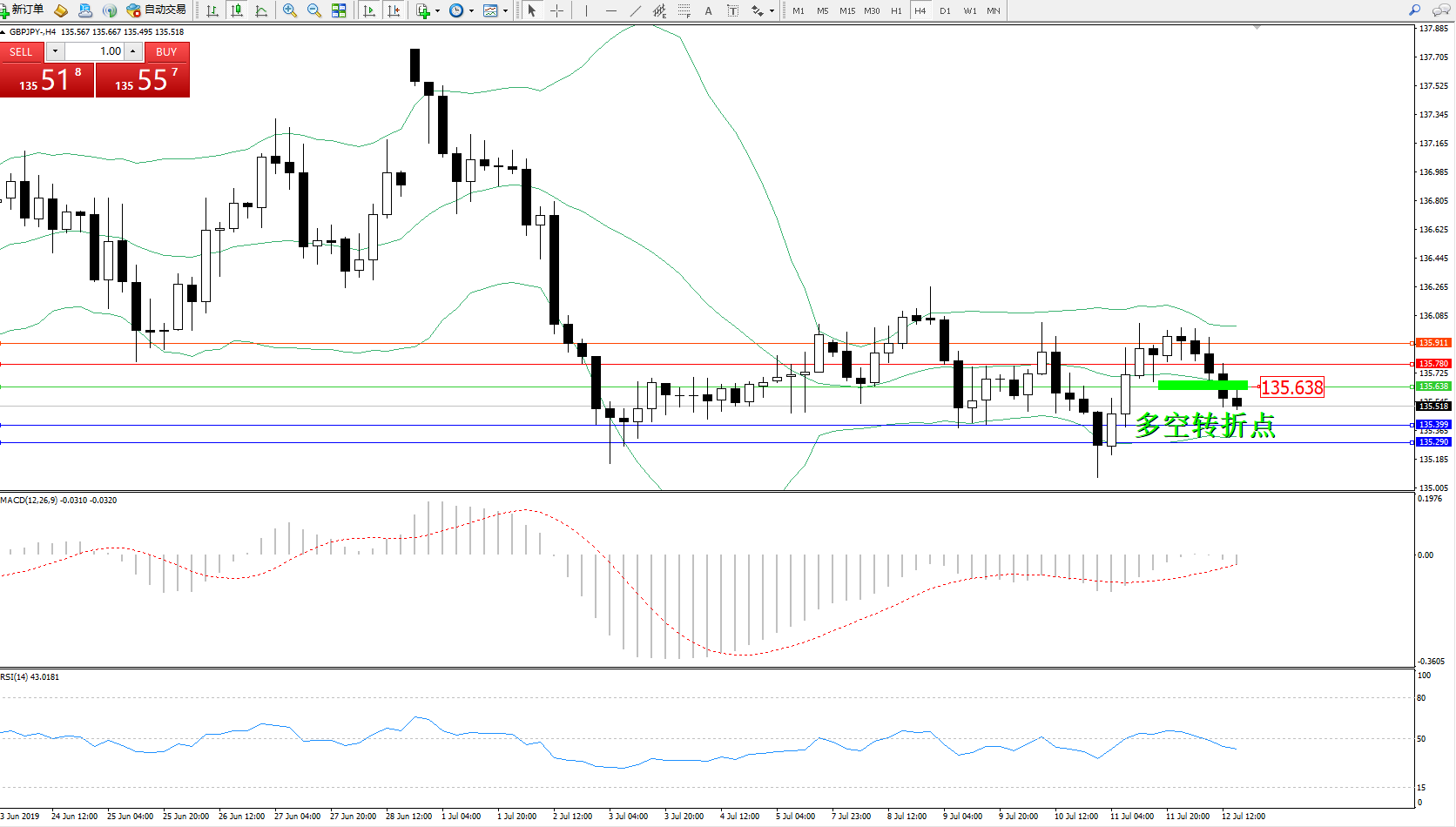 备选策略:135.638上方看涨,目标135.780135.911