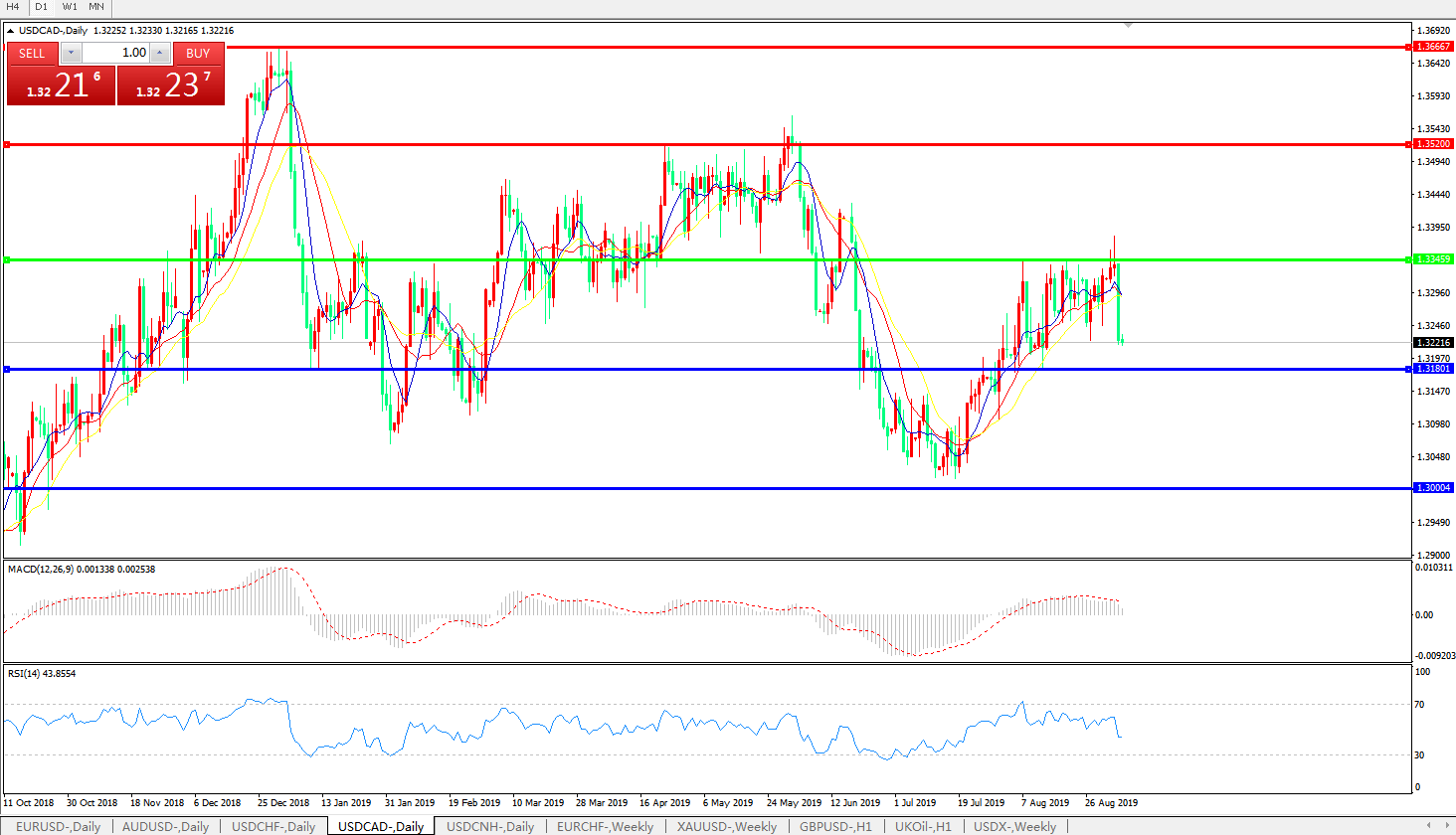 美元兑加元USDCAD    日线