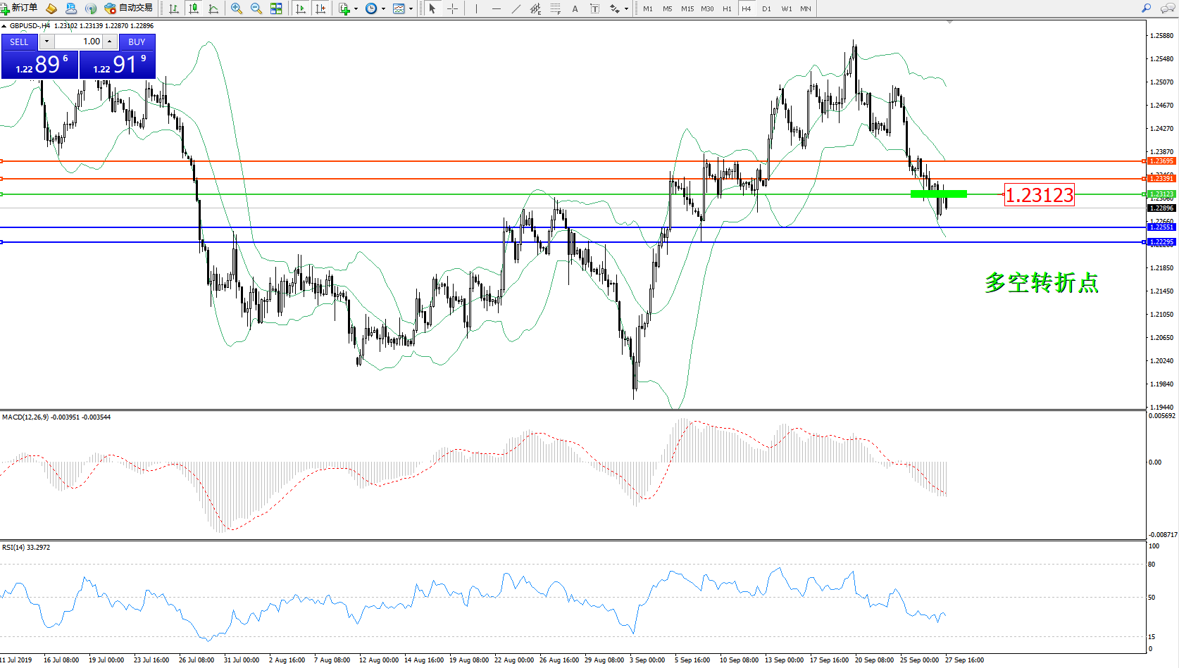 交易策略:1.23123下方看跌,目标1.22551、1.22295