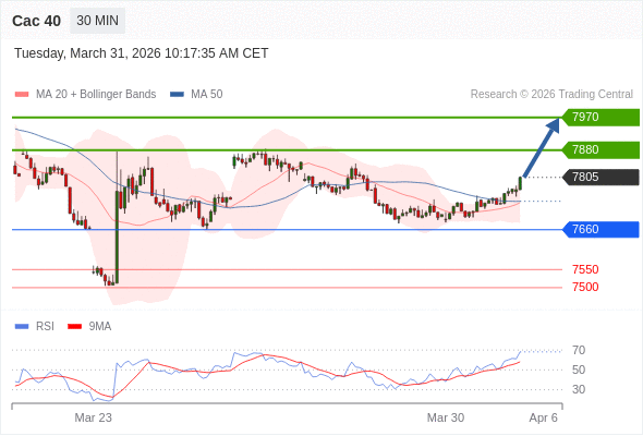 Cac 40 当日内: 进一步上涨。