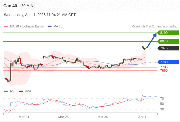 在 7780 之上,看涨,目标价位为 8070 ,然后为 8190 。