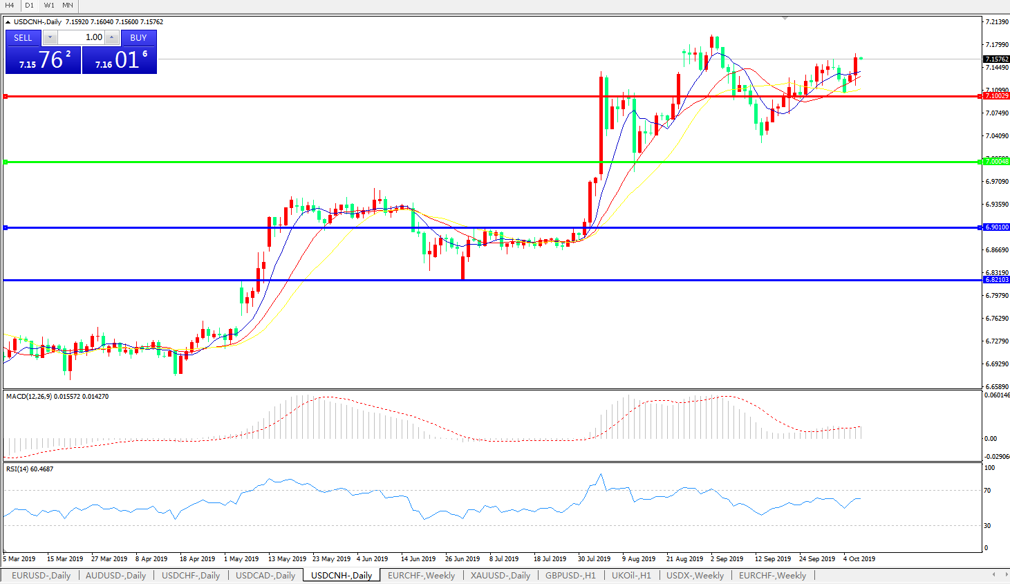 交易策略: 在7.0000之上,看涨,目标价位为7.1000,然后为7.2000。