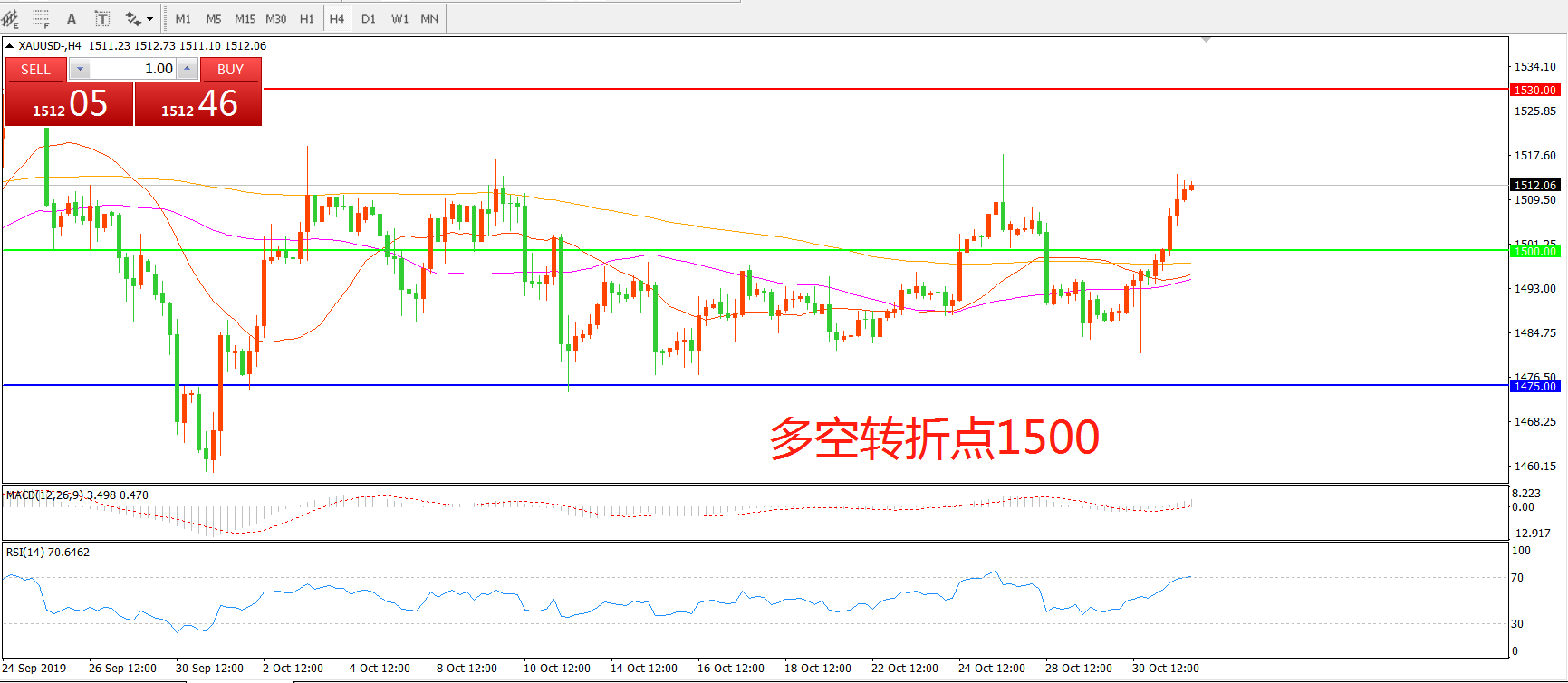 多空转折点:1500.00