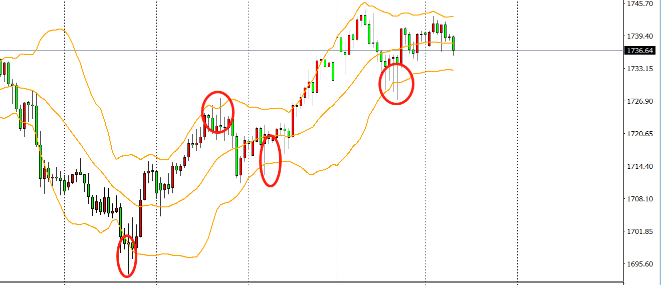 布林带(Boll)是一个能够帮我们过滤掉多数市场噪音的指标,在实际操作中总会遇到很多的长下影线和长上影线来误导我们对交易的判断,布林线的上下轨作为市场价格的均衡线,可以帮我们规避掉不必要的影线。盘面中无论出现多少的影线,只要在最终价格是处于布林通道内部,那么都是假信号,假突破,是纸老虎。