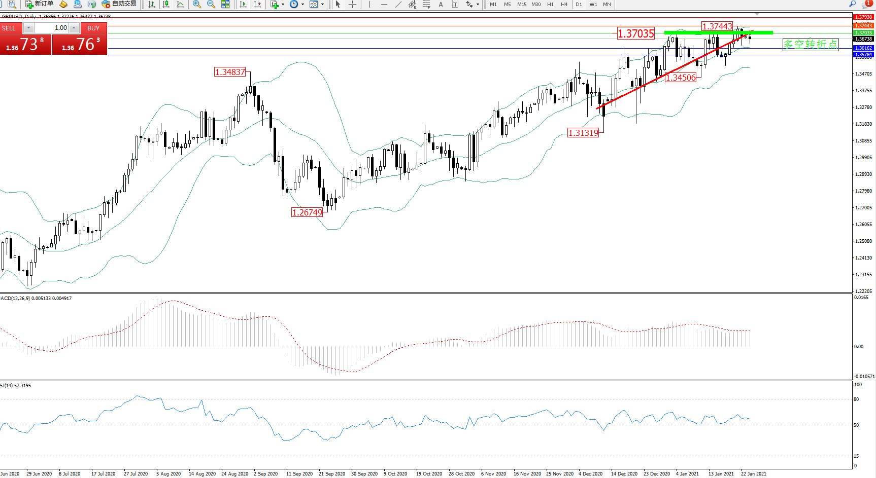 备选策略:1.37035上方看涨,目标1.37443、1.37938