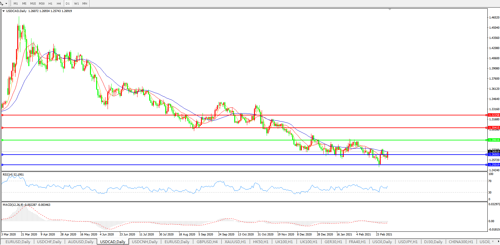 美元兑加元USDCAD    日线图: