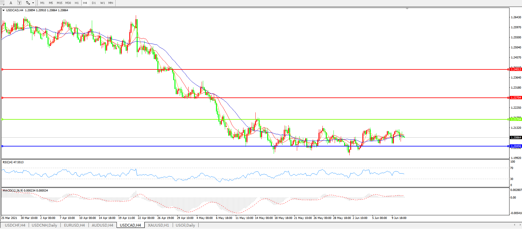 美元兑加元USDCAD 4小时图: