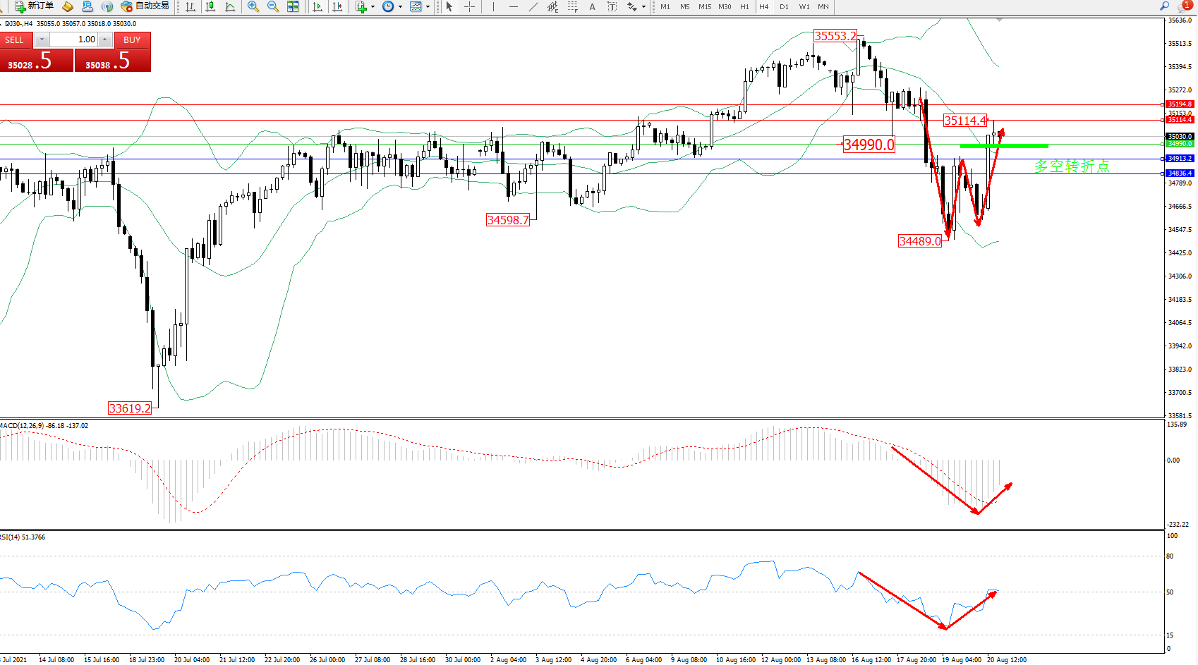 道琼斯指数8月20日(周五)收盘上涨224.52点,涨幅0.64%,报35118.64点;美股三大股指集体收涨,本周道指跌1.12%,美国的外国资产状况和庞大的经常账户赤字表明美元已经“某种程度”高估,但美元很可能在未来6-12个月内进一步上涨;美元上涨得益于美国收益率比其他发达经济体更快上升,预计这种状况将会延续。美联储周三公布的会议记录显示,政策制定者基本上预计,今年晚些时候将开始放慢每月购债步伐。