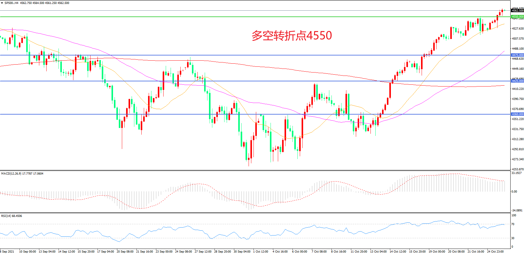 多空转折点:4550.00