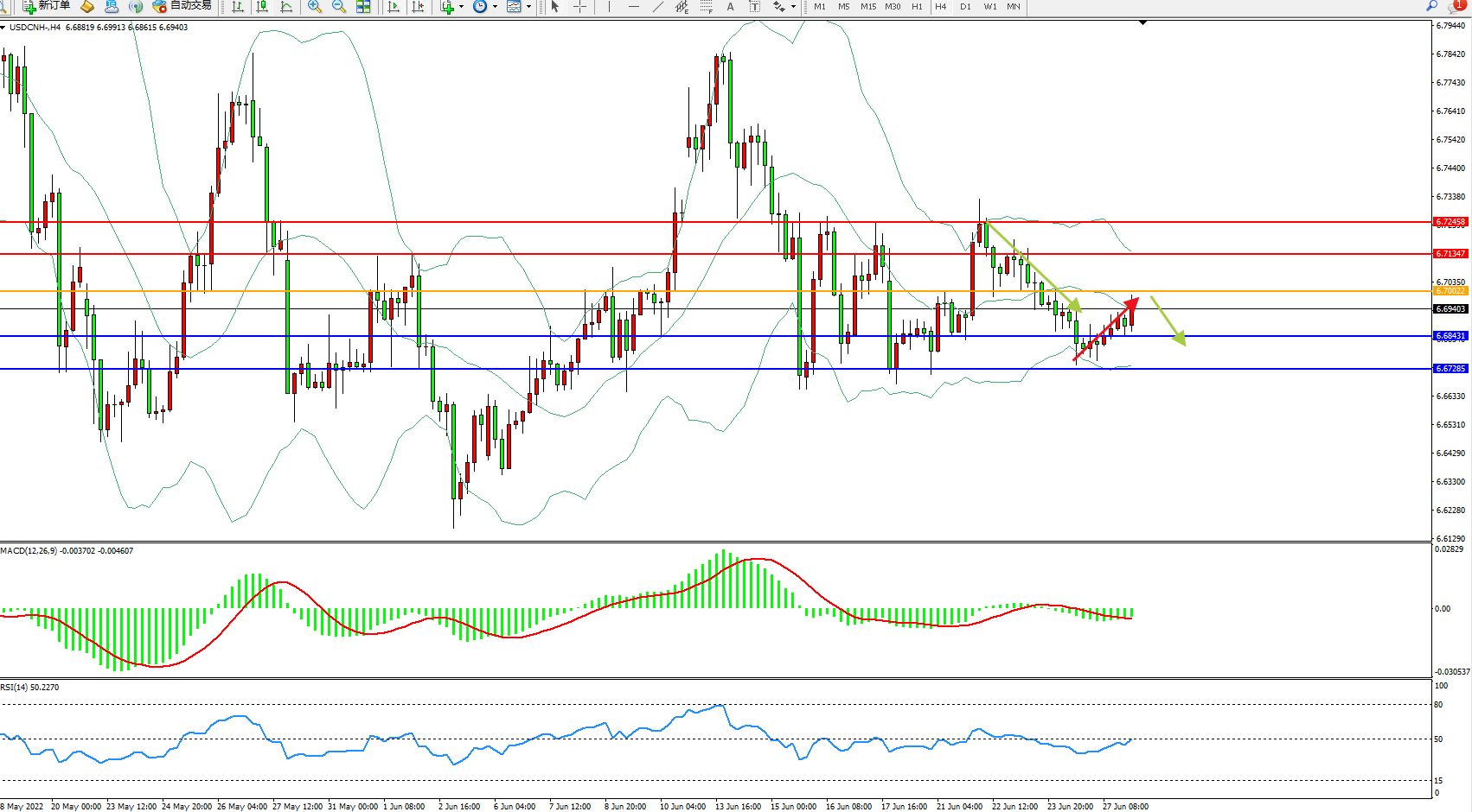 交易策略:6.70022下方看跌,目标6.68431、6.67285