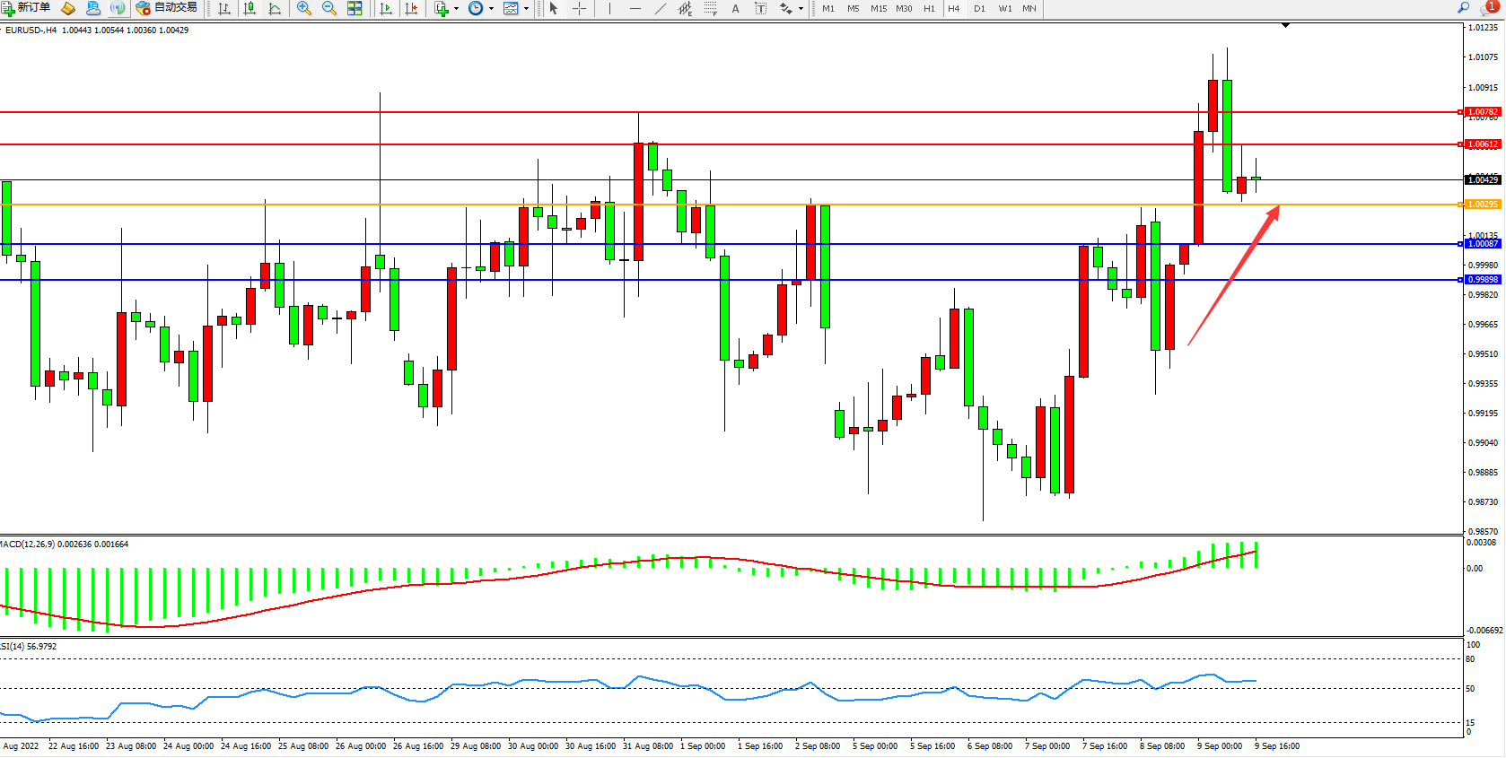 交易策略:1.00295上方看涨,目标1.00612、1.00782