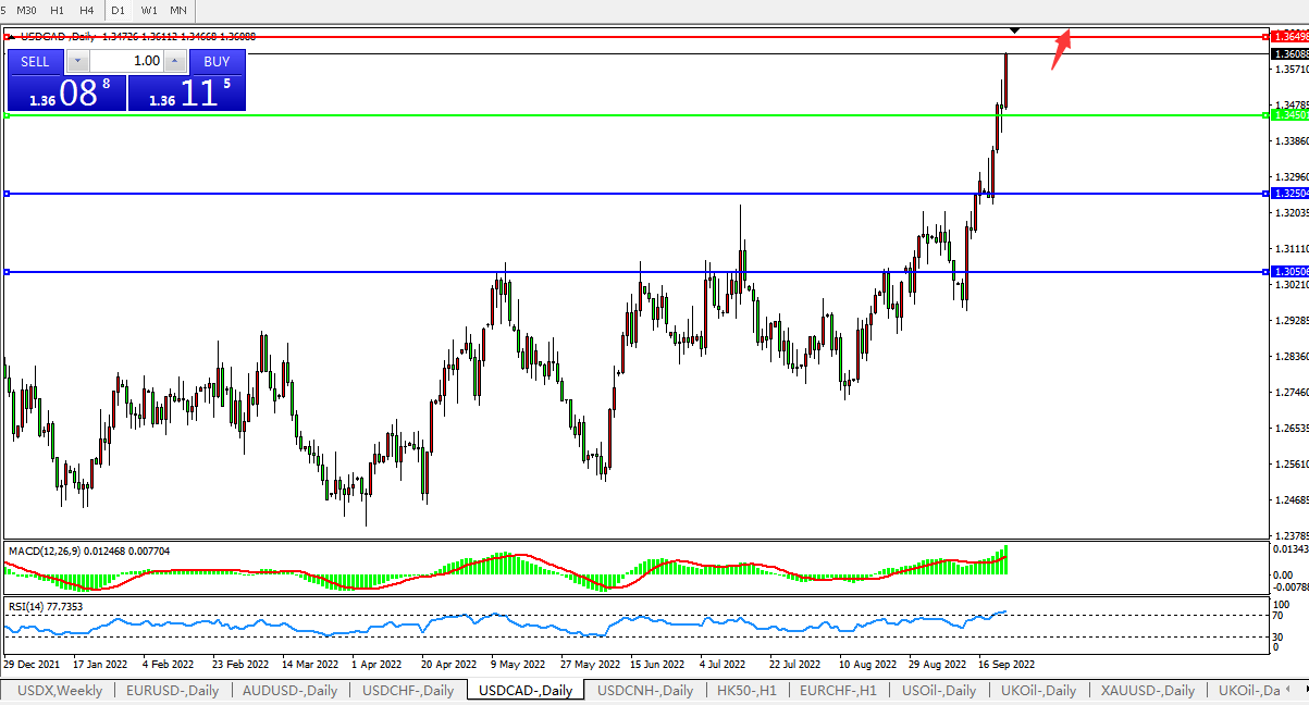 美元兑加元USDCAD  日线图: