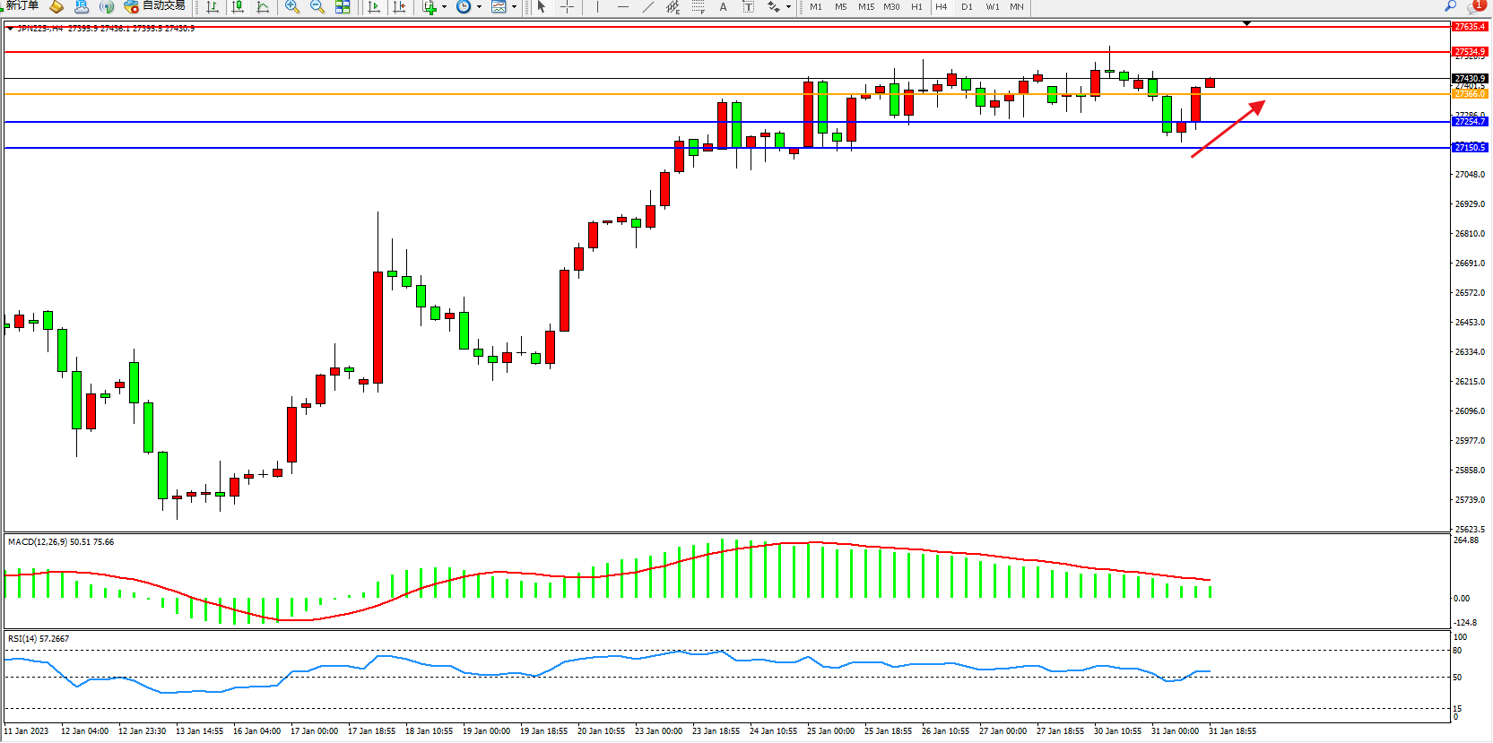 4小时图看:高位短期维持窄幅区间震荡,市场纠结高位整理中,短期未见有突破该位区间迹象,MACD指标处于0轴线上側整理,RSI指标处于50均衡线上側弱势徘徊;