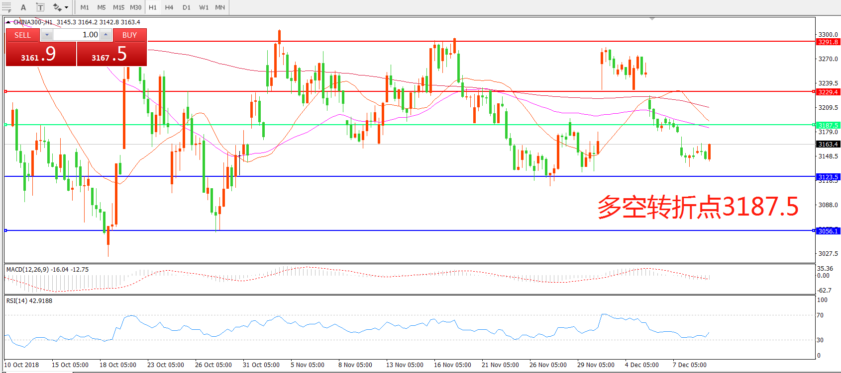 多空转折点:3187.50