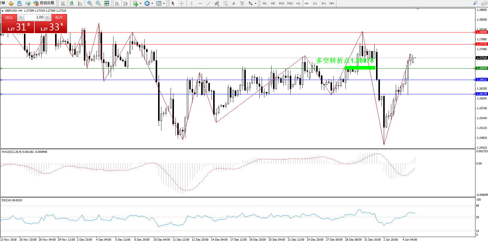 交易策略:1.26978上方看涨,目标1.277251.28099