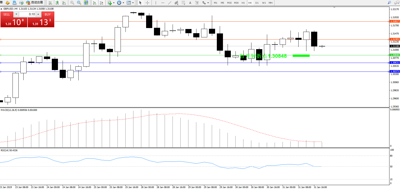 交易策略:1.30848上方看涨,目标1.313031.31817